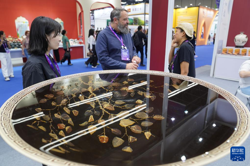 这是陶瓷博览会展区展出的餐具(10月18日摄)。