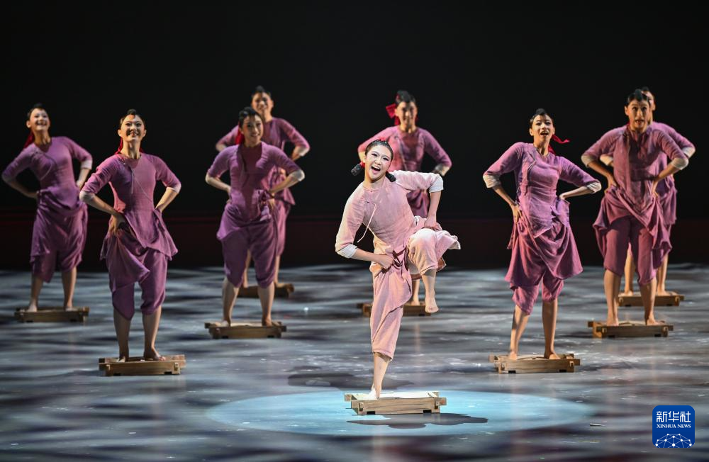11月4日,在重庆群星剧院,演员表演舞蹈《酒曲踩出幸福谣》。