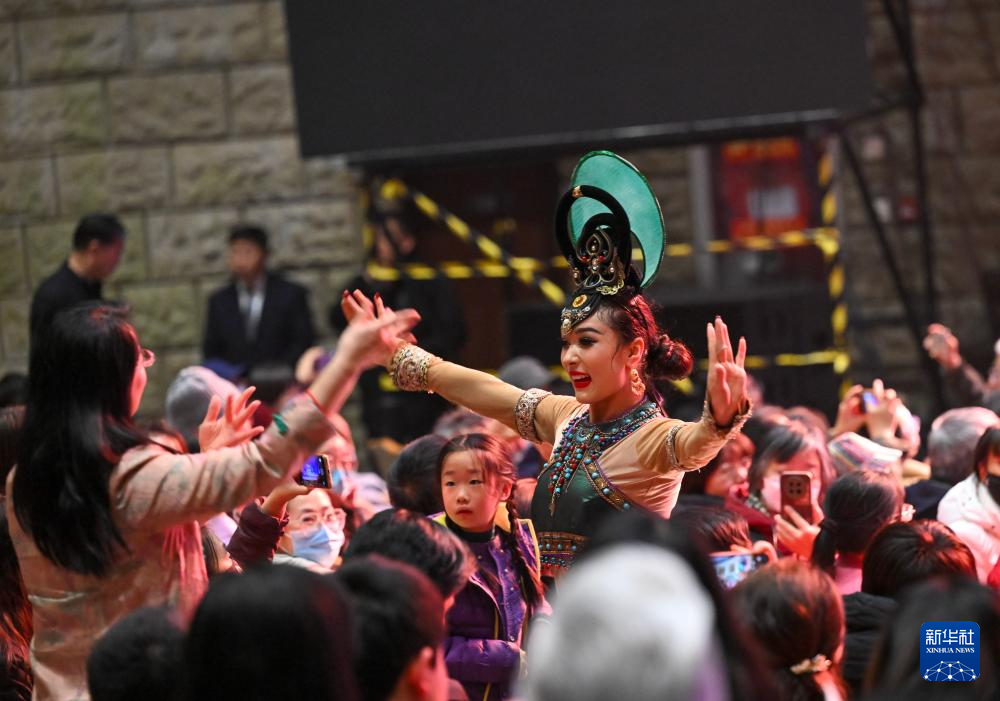 2月28日,演员在大型乐舞诗《杏花之约·丝路龟兹》中表演。