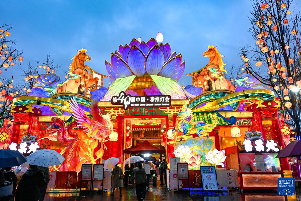 3月1日,人们在江苏省南京市夫子庙景区赏灯游玩。
