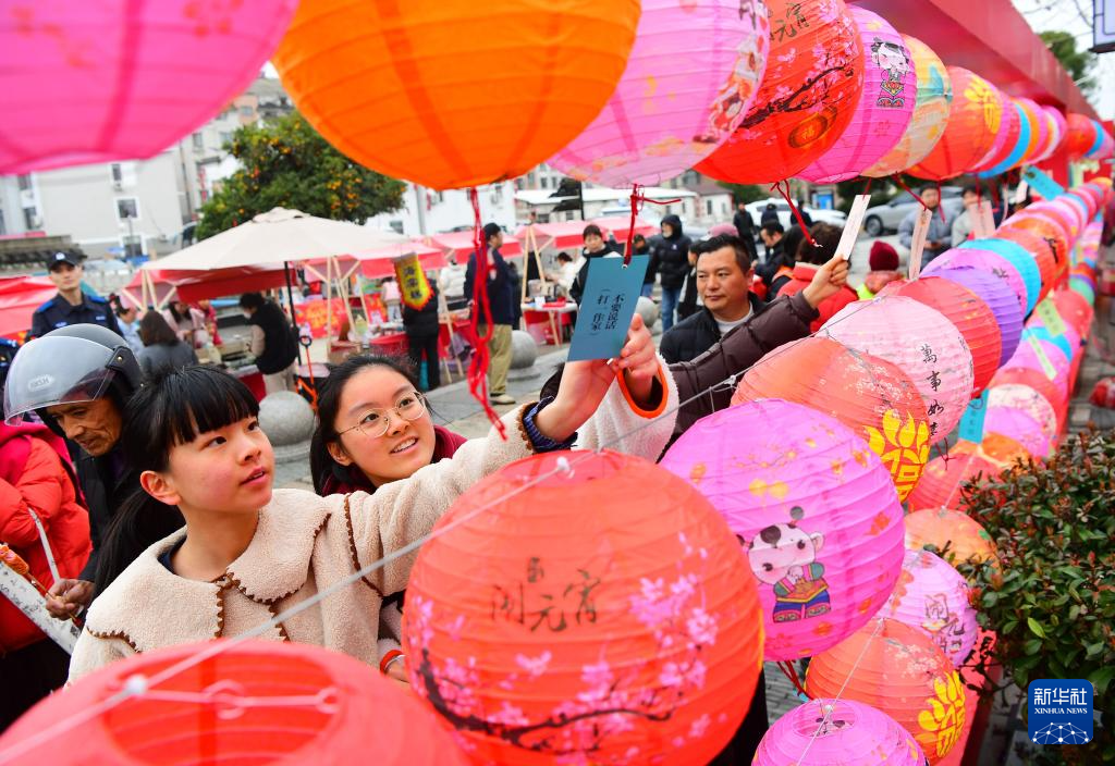 3月2日,人们在江苏省江阴市长泾镇举办的迎元宵活动上猜灯谜。