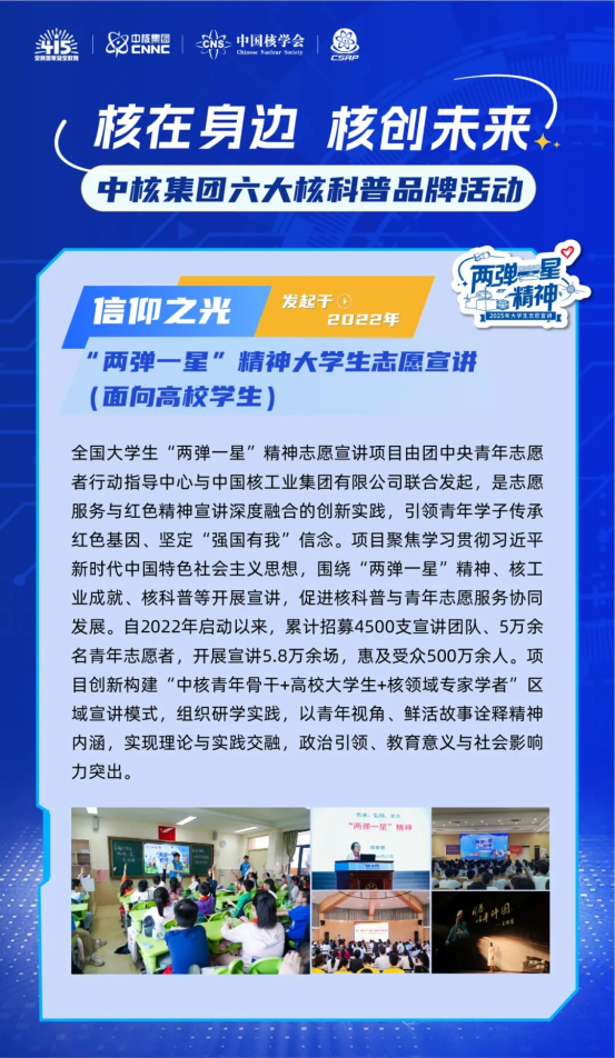 活动以“核在身边,核创未来”为核心理念,集中启动六大核科普品牌活动,并正式发布“核之光”2035行动计划,推动核科普从零散“活动式”宣传,迈向系统“生态化”建设,构建政产研学媒且全民参与的核科普新格局。