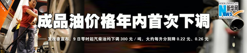 國(guó)家發(fā)展和改革委員會(huì)8日宣布,從9日零時(shí)起下調(diào)成品油最高零售價(jià)格,汽柴油均下調(diào)300元/噸,大約每升分別降0.22元、0.26元。 [詳細(xì)]