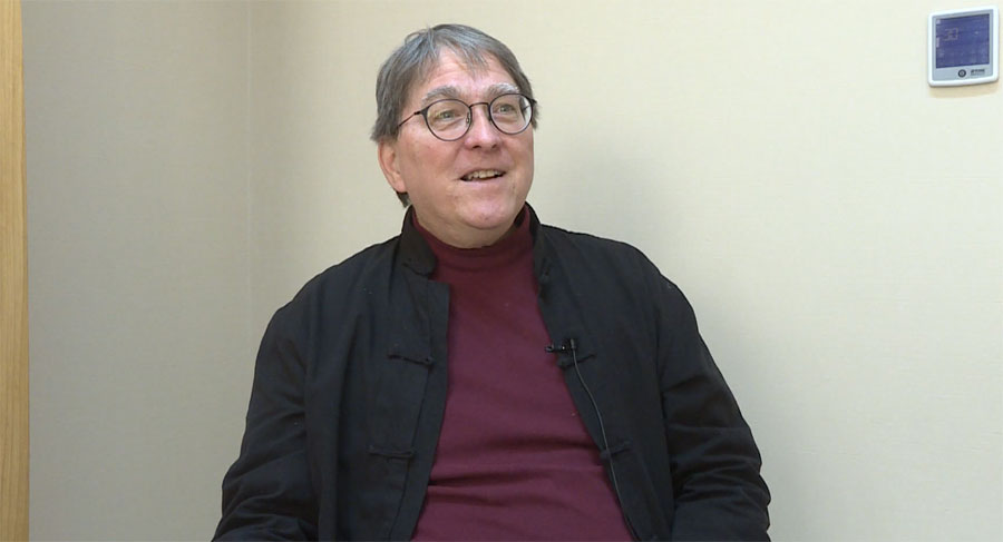 David Moser gives an interview to Xinhuanet at the Peking University in Beijing, Jan. 11, 2018. (Xinhuanet)?