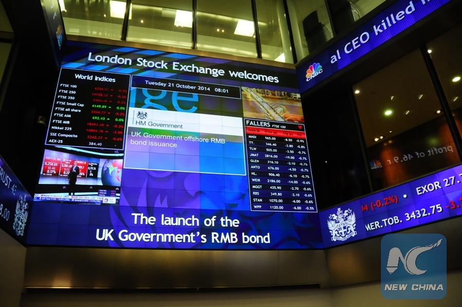 Photo taken on Oct. 21, 2014 shows an interior view of the London Stock Exchange (LSE). (Xinhua/Wu Xintao)