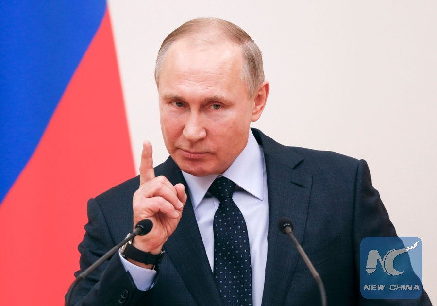 Russian President Vladimir Putin delivers a speech during a meeting with Russian athletes and team members, who will take part in the upcoming 2018 Pyeongchang Winter Olympic Games, at the Novo-Ogaryovo state residence outside Moscow, Russia January 31, 2018. (Xinhua/REUTERS)