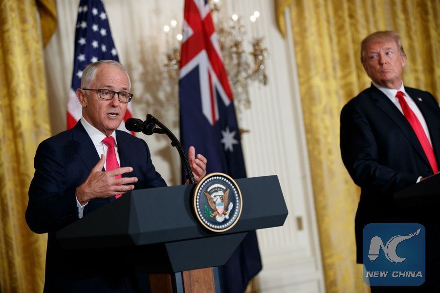WASHINGTON, Feb. 24 (Xinhua) -- Australian Prime Minister Malcolm Turnbull wrapped up a four-day visit to the United States on Saturday after failing to woo U.S. President Donald Trump back to the Trans-Pacific Partnership (TPP) negotiations.