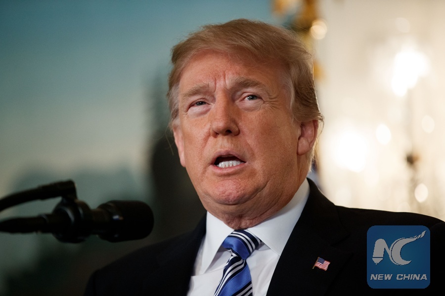 File Photo: U.S. President Donald Trump speaks in a national address regarding the mass shooting in Parkland, Florida, at the White House in Washington D.C., the United States, on Feb. 15, 2018. (Xinhua/Ting Shen)