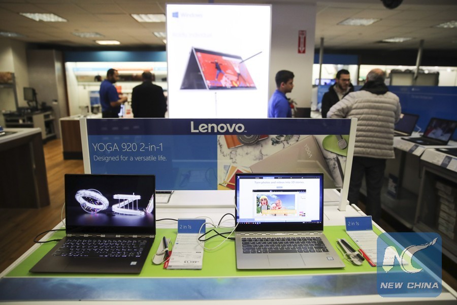 Laptops made in China are on sale at a Best Buy store in New York, the United States, on March 22, 2018. (Xinhua/Wang Ying)