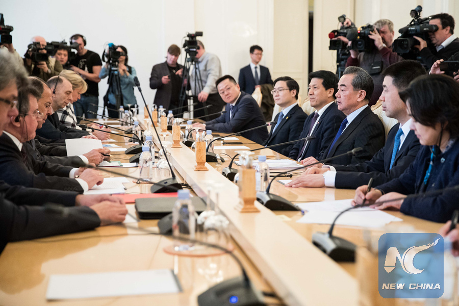 MOSCOW, April 5 (Xinhua) -- China advocates the Korean Peninsula should be denuclearized and a peace mechanism established, Chinese State Councilor and Foreign Minister Wang Yi said here Thursday.