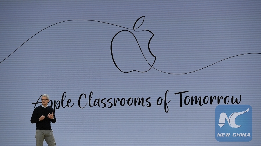 Apple CEO Tim Cook introduces a new iPad in Chicago, the United States, on March 27, 2018. (Xinhua/Xinhua)