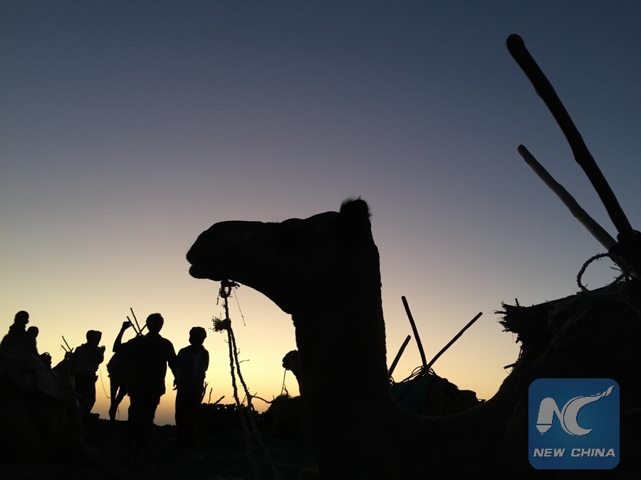 File photo shows camels and tourists in Ethiopia's desiccated Afar region. (Xinhua/Lyu Shuai)