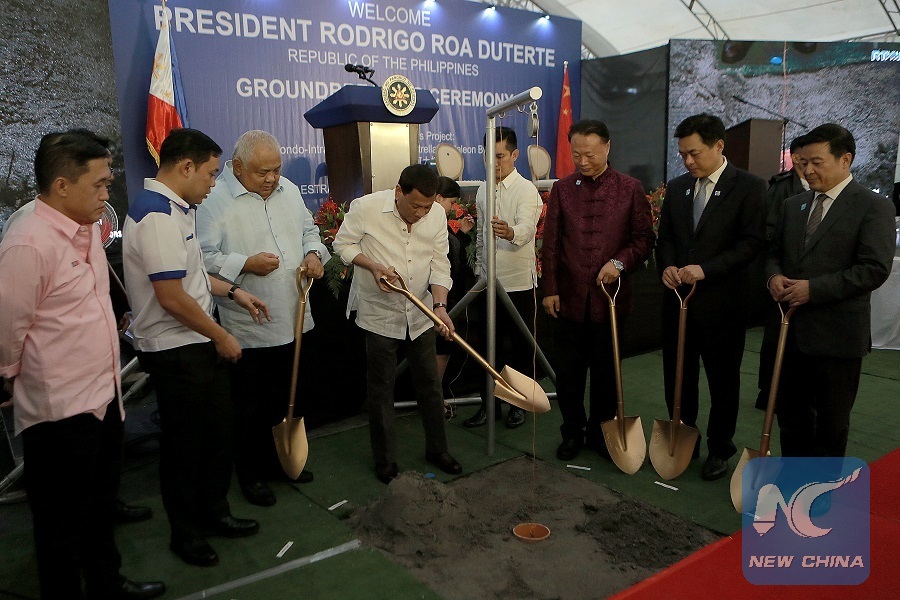 Philippine President Rodrigo Duterte (C) attends the groundbreaking ceremony of two China-funded bridges in Manila, the Philippines, July 17, 2018. (Xinhua/Rouelle Umali)