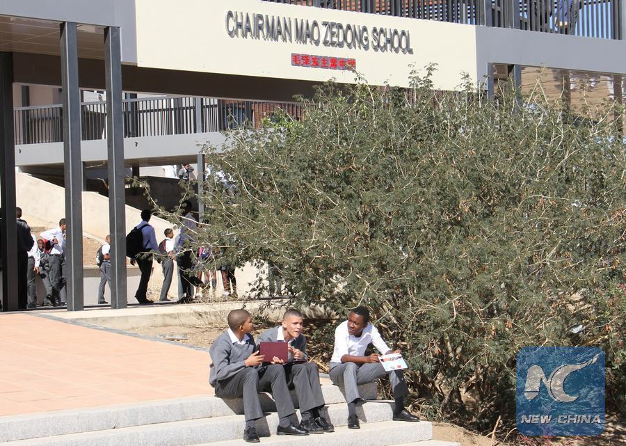 File photo shows students at the Chairman Mao Zedong School in Windhoek, Namibia, May 30, 2016. The China-aided school was renamed by the Namibian government to recognize China's contribution to the country's education. (Xinhua/Wu Changwei)