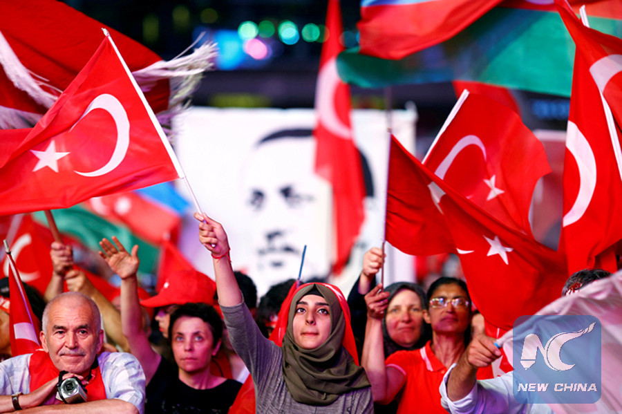 File photo: Supporters of Turkish President Recep Tayyip Erdogan wave national flags as they listen to him through a giant screen in Istanbul's Taksim Square, Turkey, August 10, 2016. (REUTERS)