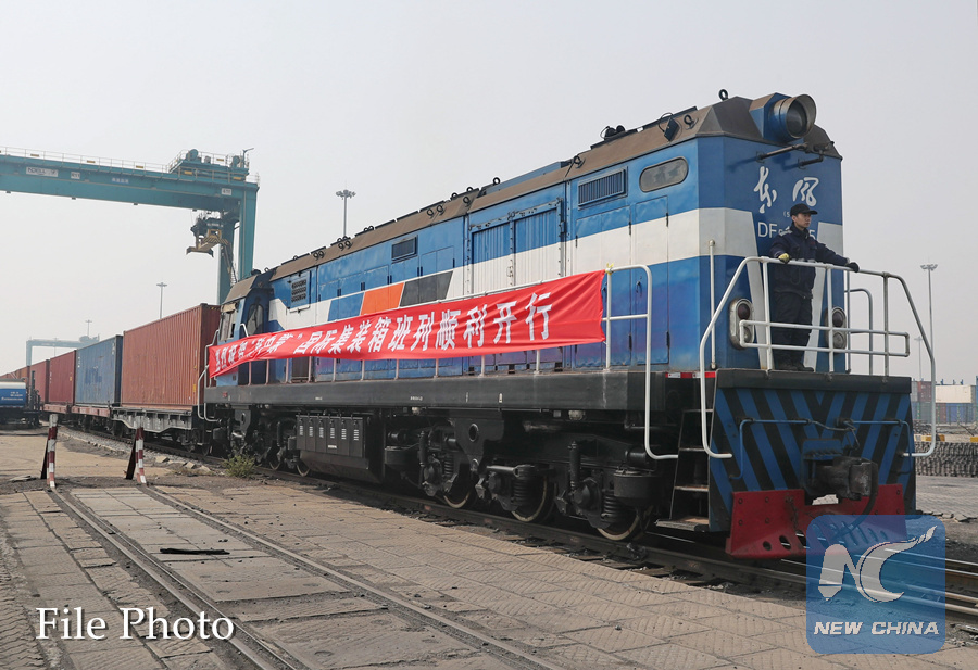 An international container train departs from the Chinese port city of Qinhuangdao for the Mongolian capital of Ulan Bator on April 18, 2018. (Xinhua/Yang Shiyao)