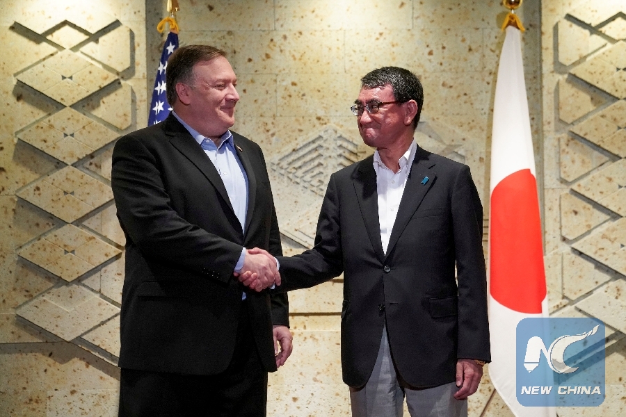 File Photo: U.S. Secretary of State Mike Pompeo shakes hands with Japan's Foreign Minister Taro Kono before a breakfast meeting in Tokyo, Japan, July 8, 2018. (Xinhua/Reuters)