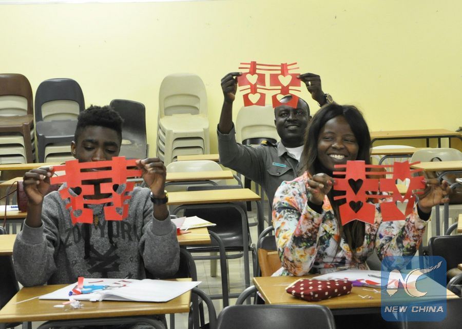 File photo shows students show their papercutting at University of Namibia (UNAM) in Windhoek Aug. 1, 2017. (Xinhua/Zhang Fan)