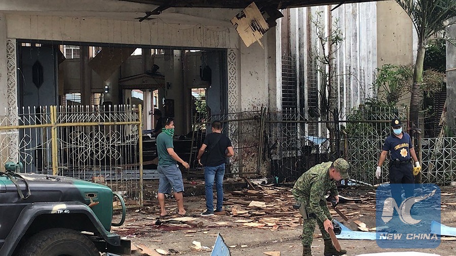 MANILA, Jan. 28 (Xinhua) -- Jolo in southern Philippine Sulu province is on lockdown as security forces investigated the twin explosions at a Roman Catholic cathedral that killed 20 people and wounded over 100 on Sunday, authorities said on Monday.