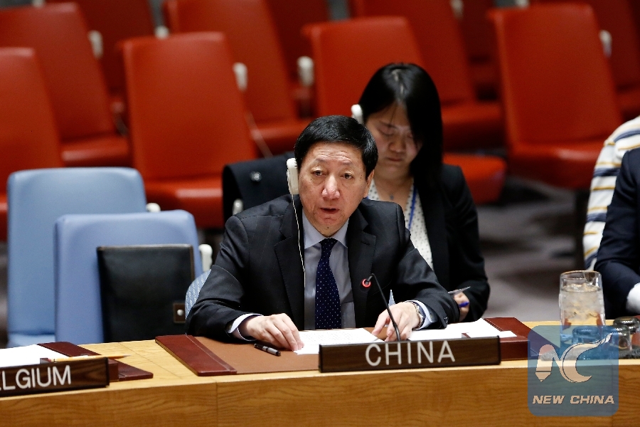 Wu Haitao, China's deputy permanent representative to the United Nations, addresses a meeting of the UN Security Council on the situation in the Middle East at the UN headquarters in New York March 26, 2019. (Xinhua/Li Muzi)