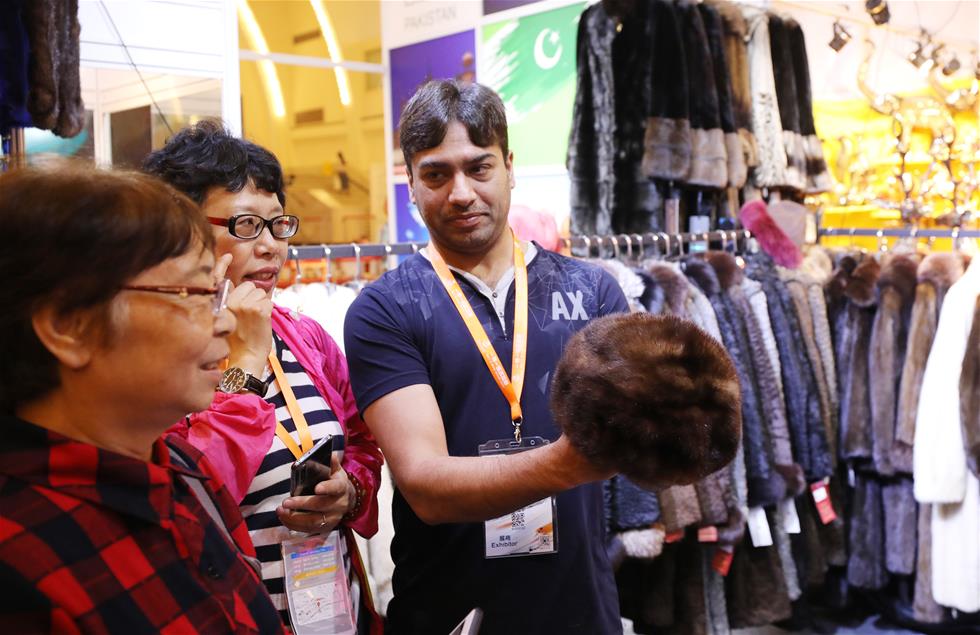 An exhibitor (R) from Pakistan introduces exhibites to visitors in Shanghai, east China, May 31, 2019. The Belt and Road Brand Expo 2019 kicked off at Shanghai Exhibition Center in Shanghai Friday. (Xinhua/Fang Zhe)