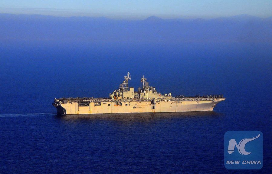 The amphibious assault ship USS Boxer performs maneuvers off the coast of Southern California in this Dec. 6, 2008 file photo. (Xinhua/REUTERS)