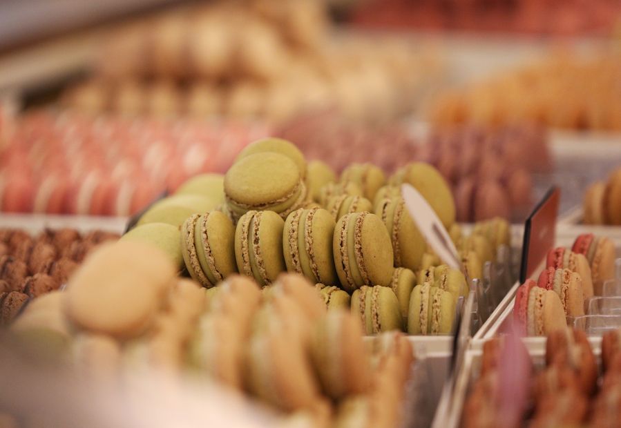 Macarons at a French macaron shop Laduree in Paris, France. (Xinhua/Gao Jing)