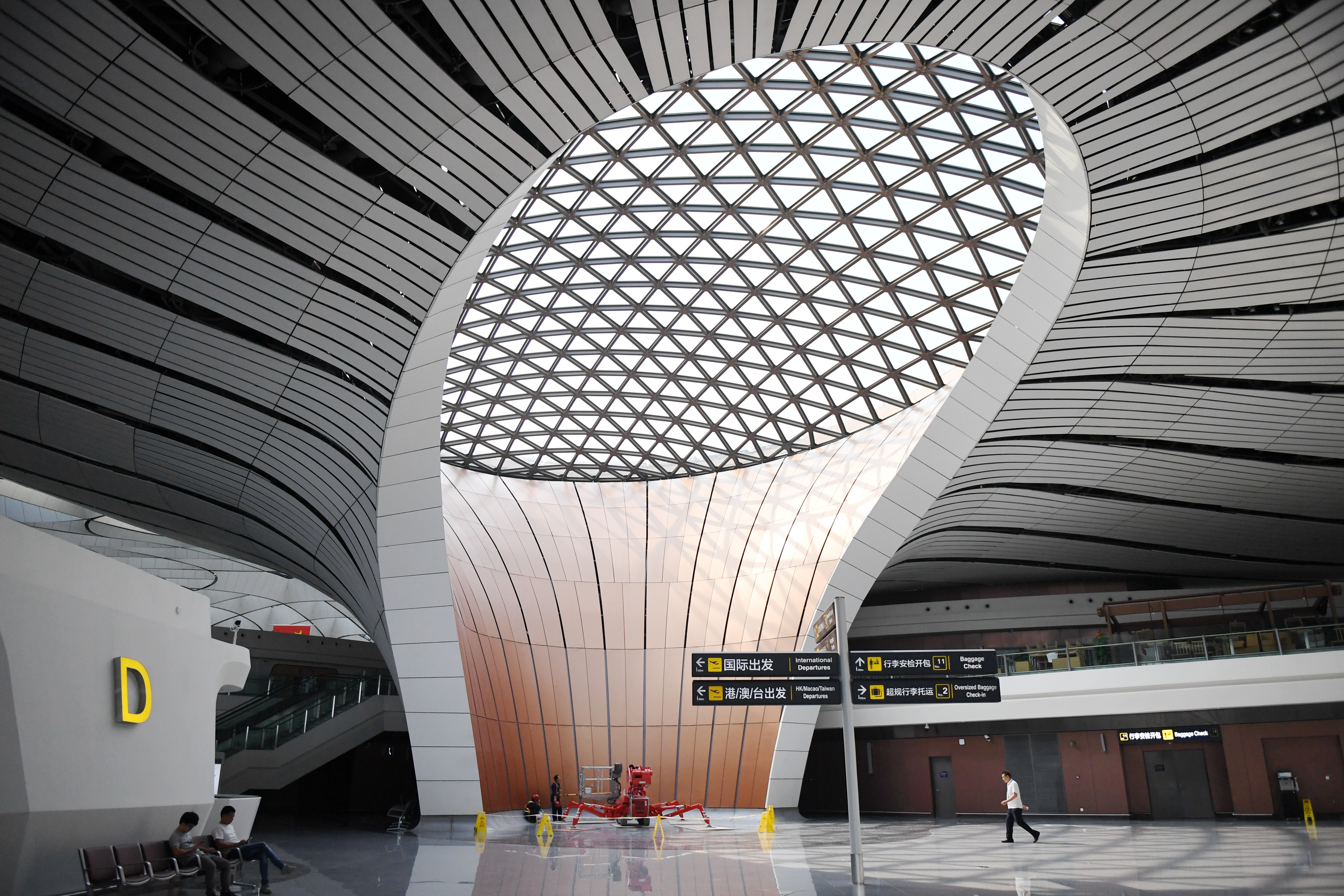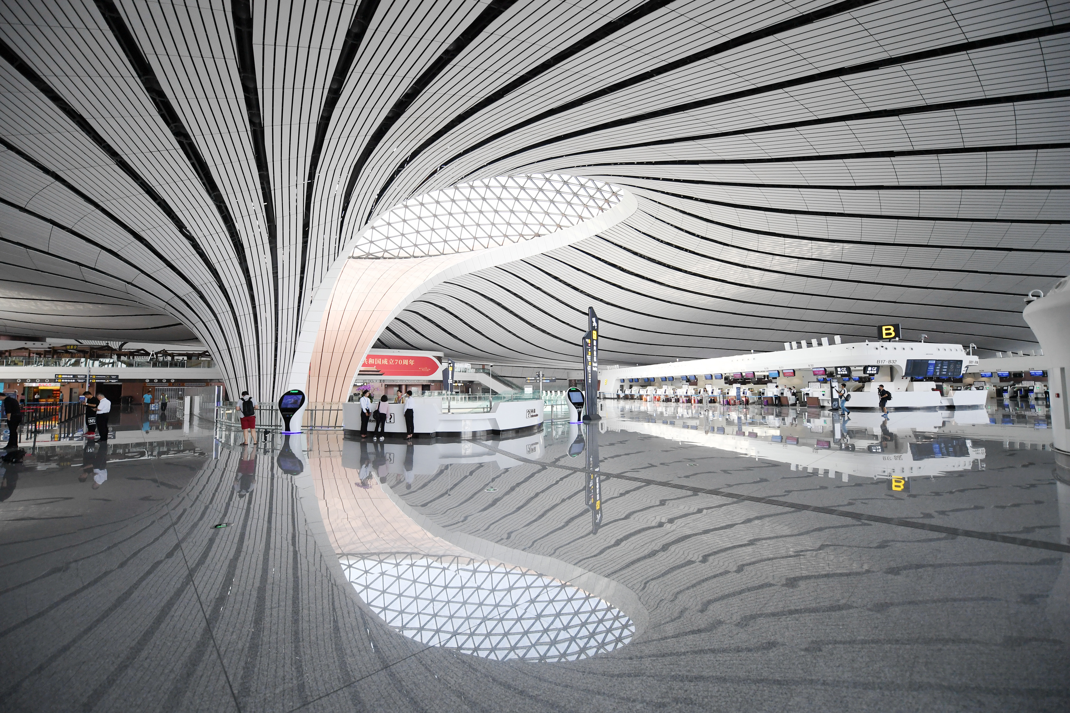 Photo taken on Sept. 4, 2019 shows an interior view of the Beijing Daxing International Airport in Beijing, capital of China. (Xinhua/Zhang Chenlin)