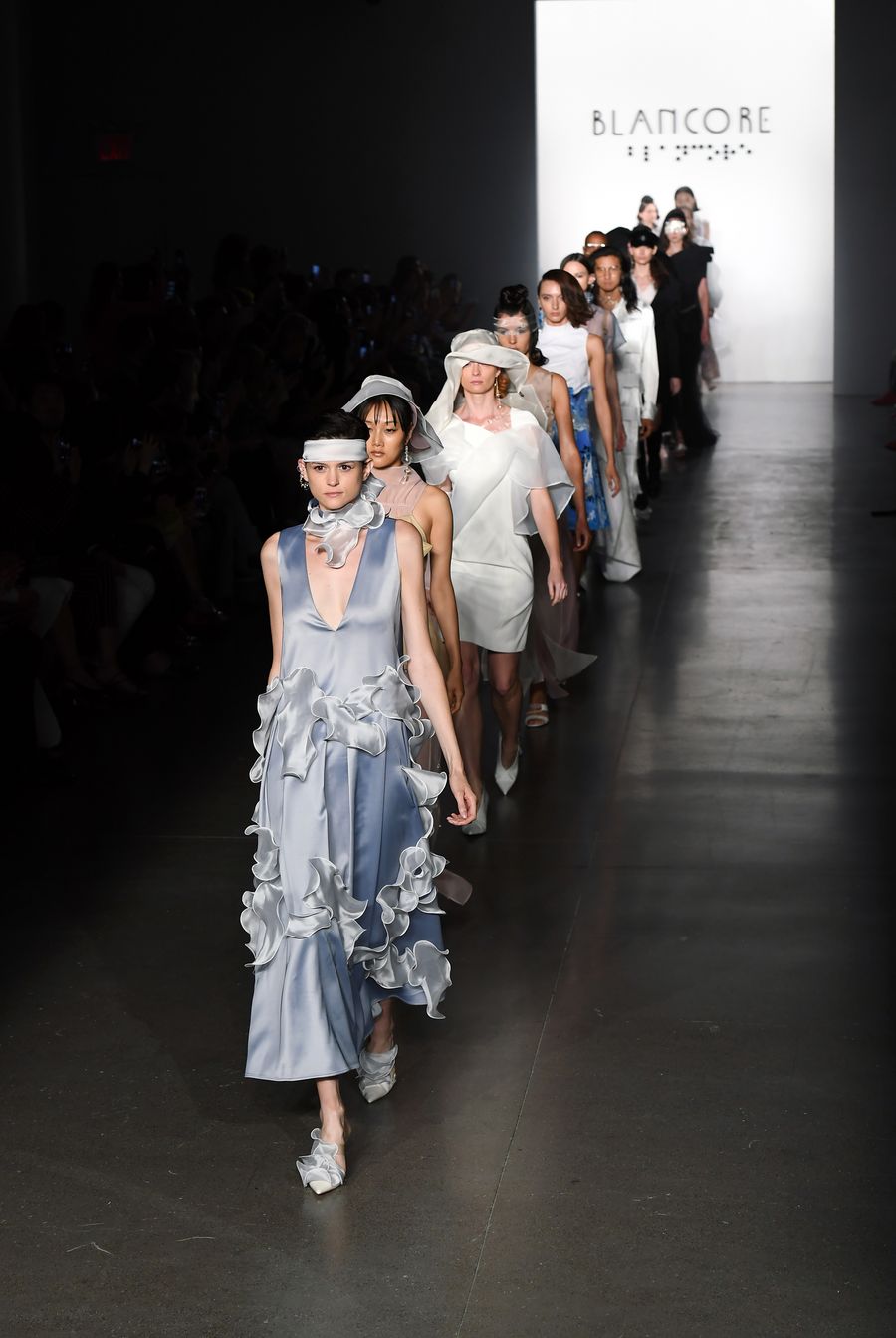 Models present creations from the Blancore Spring/Summer 2020 collection during New York Fashion Week in New York, the United States, on Sept. 5, 2019. (Xinhua/Li Rui)