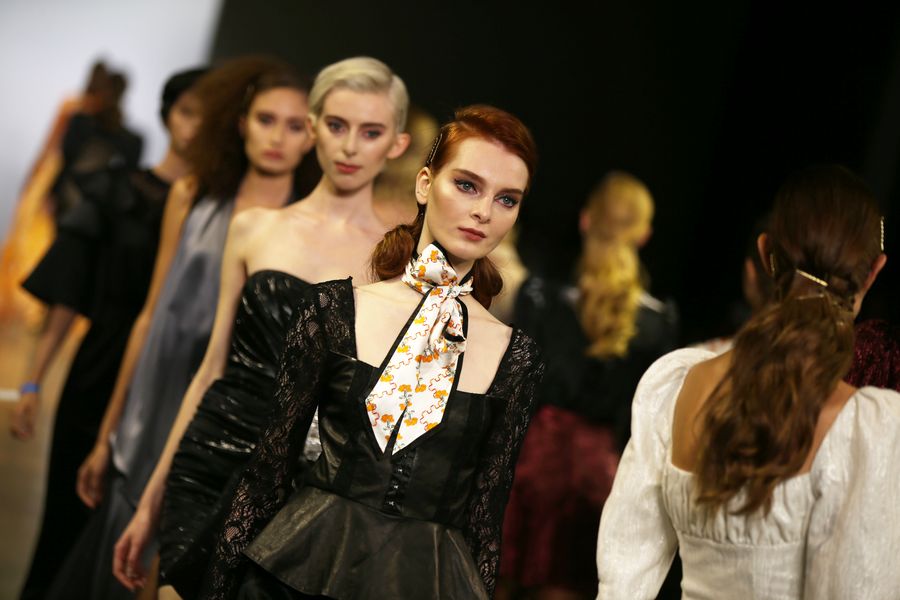 This season's vibrant and lustrous looks were inspired by the luxurious design of western aristocrats' clothing during the 19th century, in particular the tailoring of classical suits and skirts, so as to highlight body shapes and feminine charm, according to a statement of the brand.