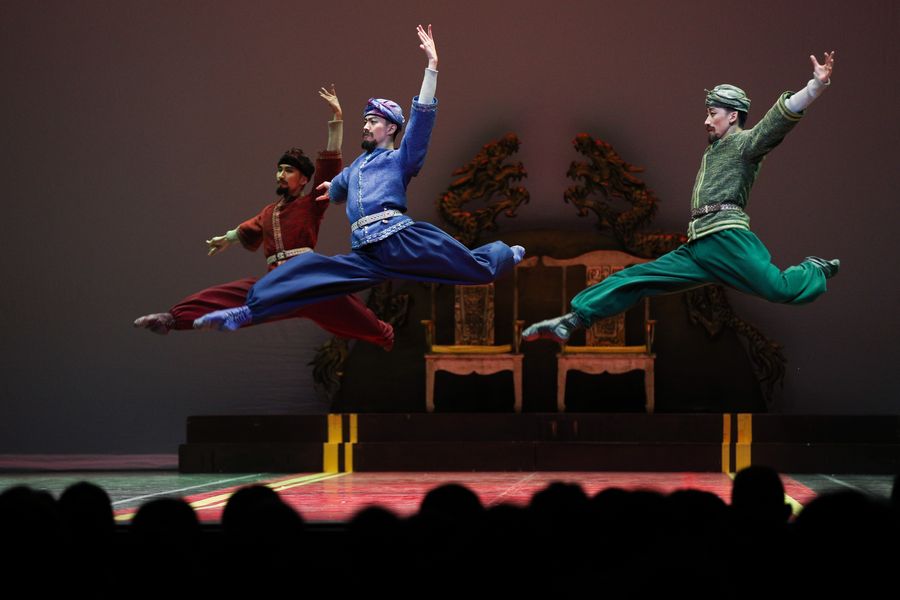 Artists dance during the ballet "The Last Mission of Marco Polo" at the Royal Circus in Brussels, Belgium. (Xinhua/Zheng Huansong)