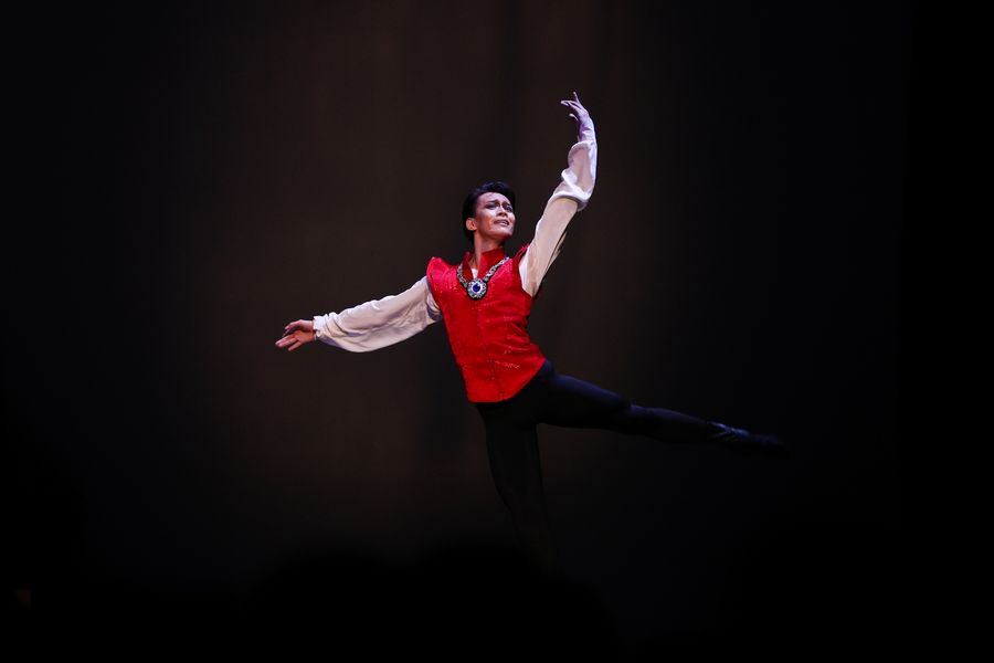An artist dances during the ballet "The Last Mission of Marco Polo" at the Royal Circus in Brussels, Belgium, on Sept. 11, 2019. Performed by China's Shanghai Ballet, the show was organized by the Chinese Embassy in Belgium and the Chinese Mission to the European Union to celebrate the 70th anniversary of the founding of the People's Republic of China. (Xinhua/Zheng Huansong)