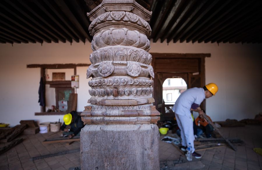 After the earthquake, at the request of the Nepali government, the Chinese government shouldered the project in 2017 to restore the complex. Zhou and his team with expertise in restoring historical Tibetan buildings from the Chinese Academy of Cultural Heritage (CACH) thereupon arrived in Kathmandu.