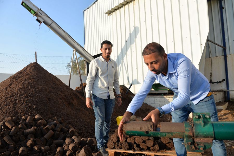 At the same place where the engineers work on their product, another engineer Khaled Abu Ta'ima, 25, was observing the machine and inspecting the pomace cylinders before use.