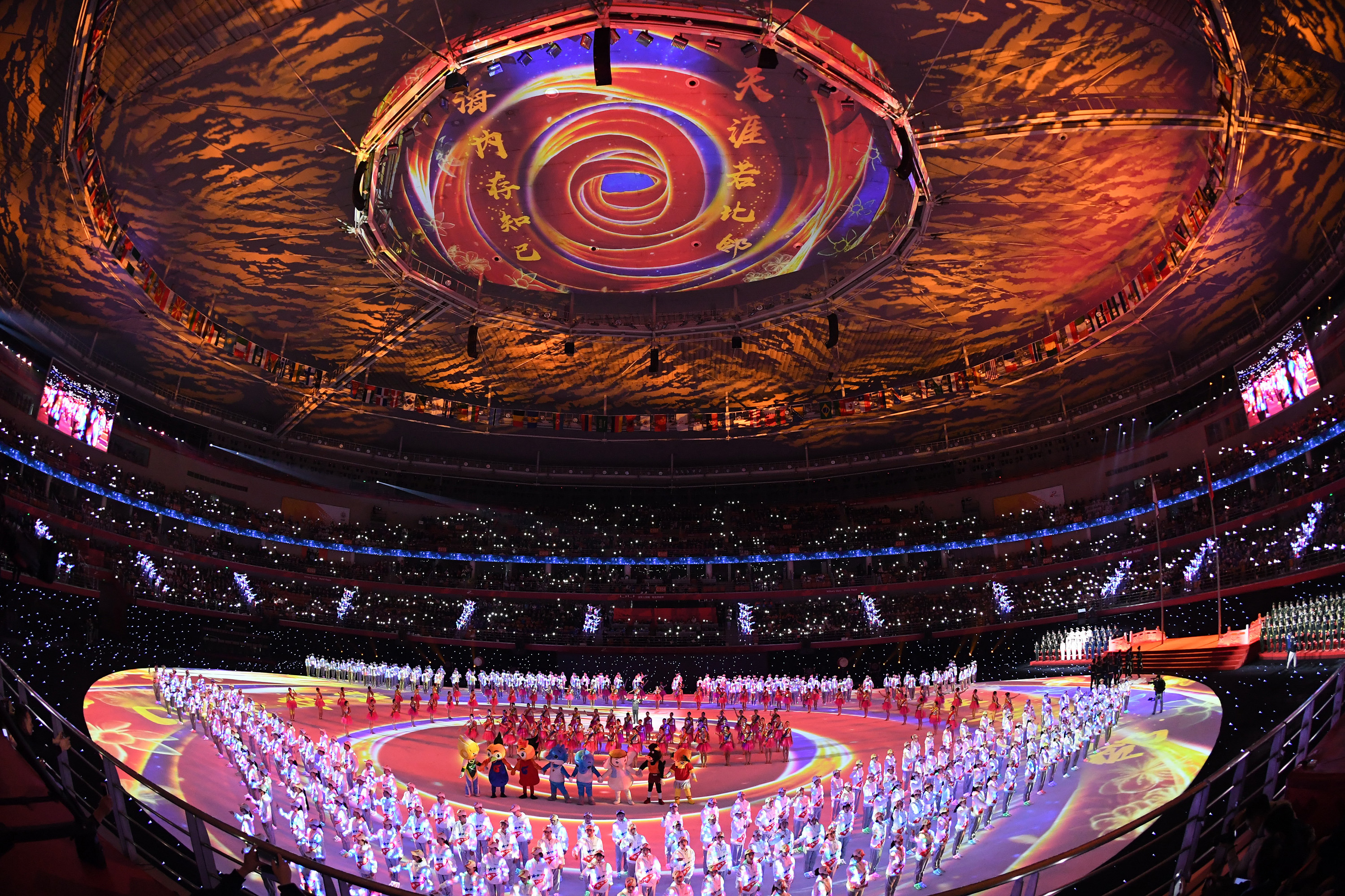 Photo taken on Oct. 27, 2019 shows the art performance during the closing ceremony of the 7th CISM Military World Games in Wuhan, capital of central China's Hubei Province. (Xinhua/Chen Yehua)
