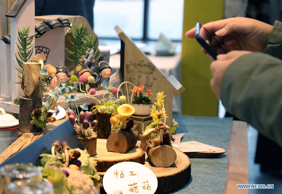 "Plants" made with clay are diplayed at Shanghai International Hobby&Craft Expo in east China's Shanghai, Nov. 29, 2019. The three-day Shanghai International Hobby&Craft Expo kicked off here on Friday. (Xinhua/Liu Ying)