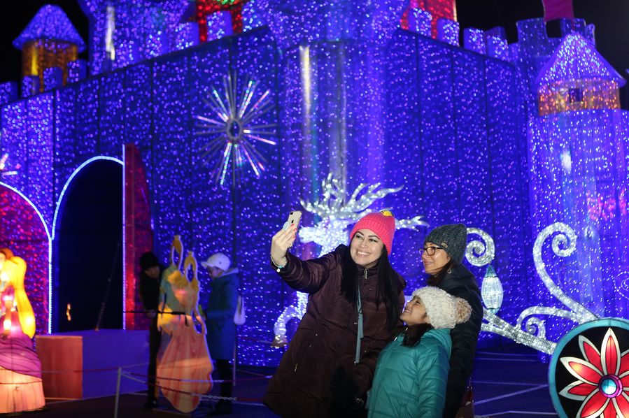 Handcrafted by 60 world-renowned lantern artisans, some 120 lantern displays have been created representing a diverse range of shapes and sizes, including an 18-meter-tall Christmas tree, a 30-meter-long panda-themed psychedelic light tunnel, as well as life-sized dinosaurs, giant pandas, and more.