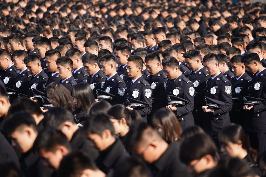 People mourn at a national memorial ceremony to commemorate the victims of the Nanjing Massacre at the memorial hall for the massacre victims in Nanjing, east China's Jiangsu Province, Dec. 13, 2019. (Xinhua/Ji Chunpeng)