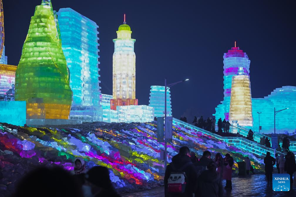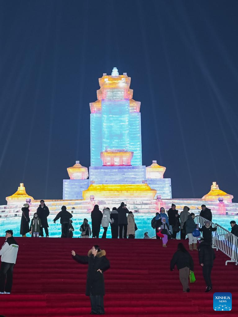 Tourists visit Changchun Ice and Snow New World in Changchun, northeast China's Jilin Province, Dec. 19, 2025. The 29th Changchun Ice and Snow Festival kicked off here on Friday. (Photo by Zhang Yang/Xinhua)
