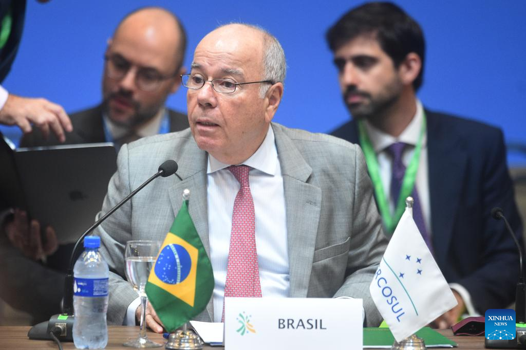 Brazilian Minister of Foreign Affairs Mauro Vieira participates in the Common Market Council meeting of Mercosur in Foz do Iguacu, Brazil, on Dec. 19, 2025. (Photo by Lucio Tavora/Xinhua)