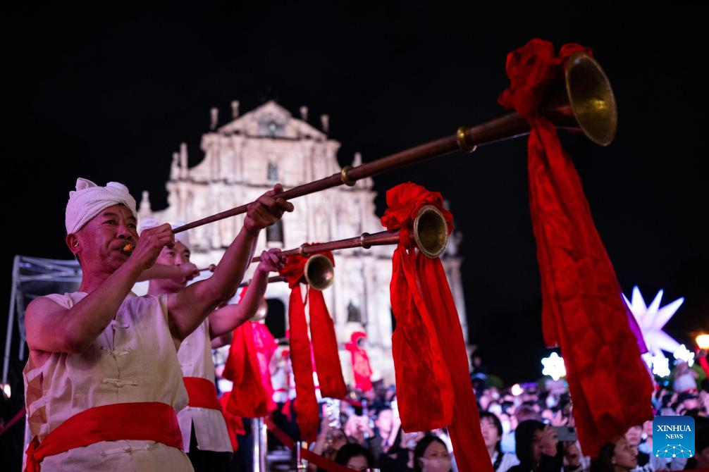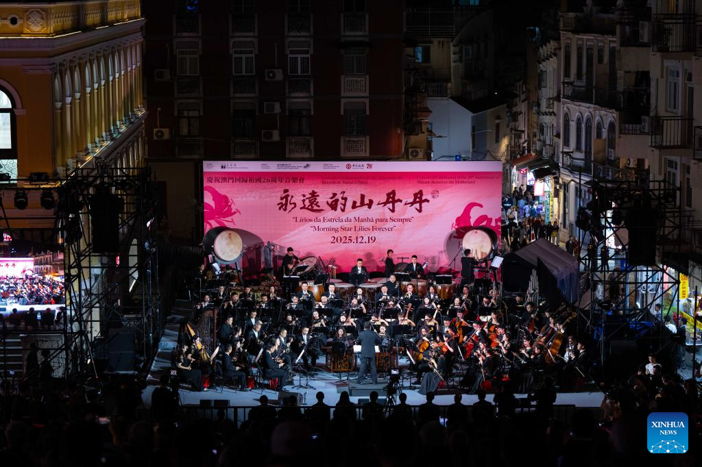 This photo taken on Dec. 19, 2025 shows a concert celebrating the 26th anniversary of Macao's return to the motherland in Macao, south China. Titled "Morning Star Lilies Forever", the concert was held here on Friday. (Xinhua/Cheong Kam Ka)
