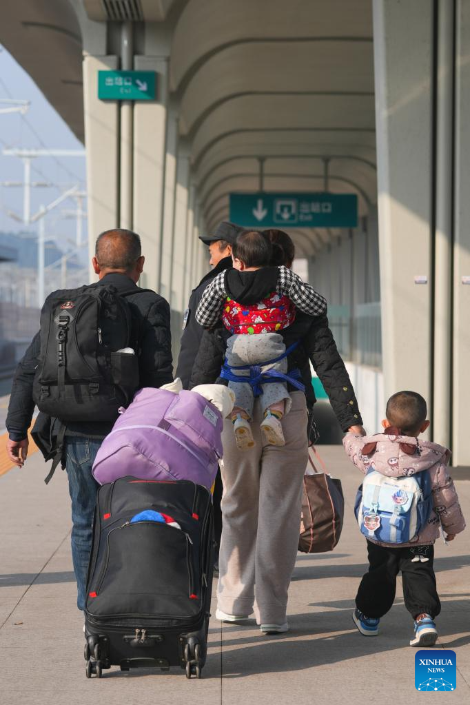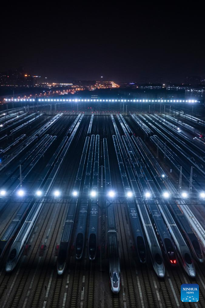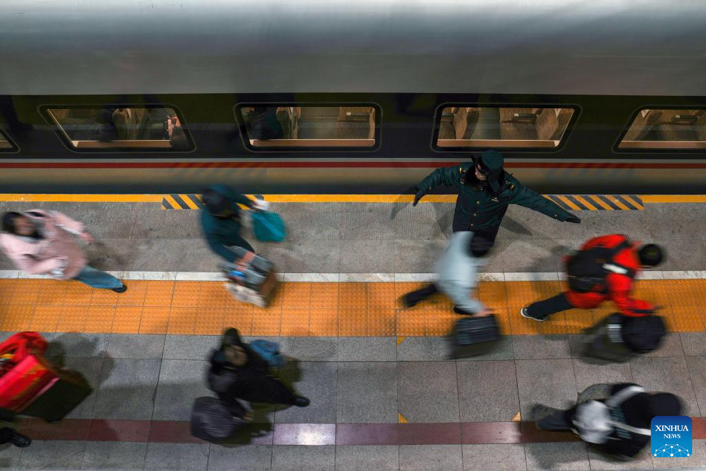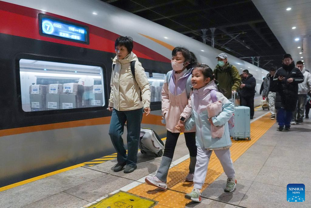 BEIJING, Feb. 2 (Xinhua) -- At 12:40 a.m. Monday, train K4069 pulled out of Beijing West Railway Station, becoming the first passenger train to depart from Beijing as part of the 2026 Spring Festival travel rush. On it were travelers either heading home or setting out on leisure travel, as the country's annual tale of movement and reunion began to unfold.