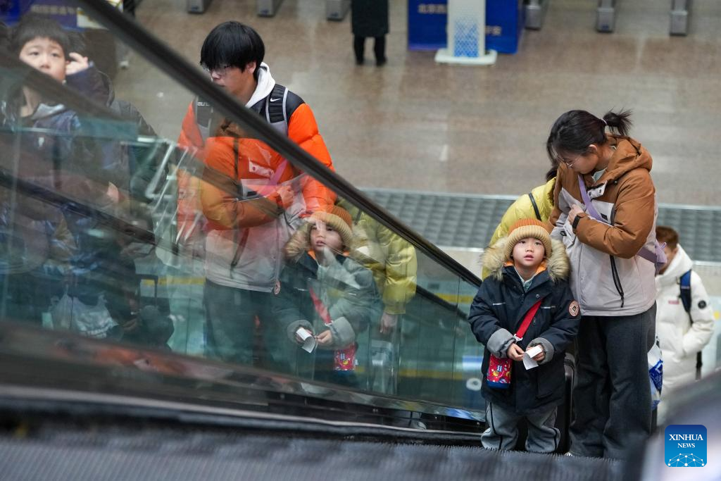 Passengers are seen at Beijing West Railway Station in Beijing, capital of China, Feb. 2, 2026.