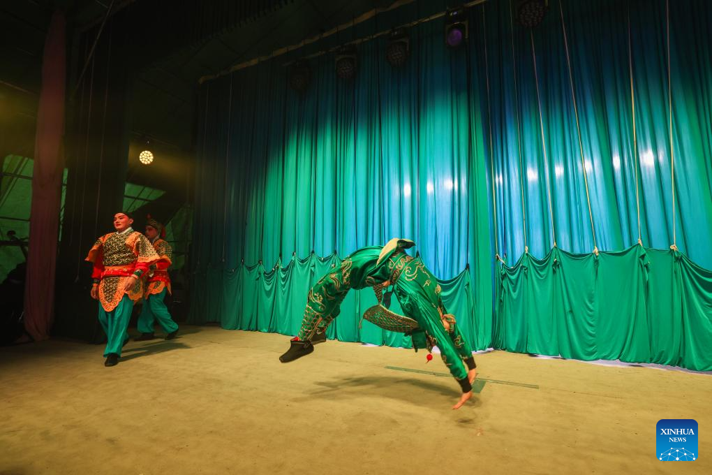 Artists warm up before a Wuju Opera show in Meixia Village, Jinyun County of Lishui City, east China's Zhejiang Province, Jan. 29, 2026.