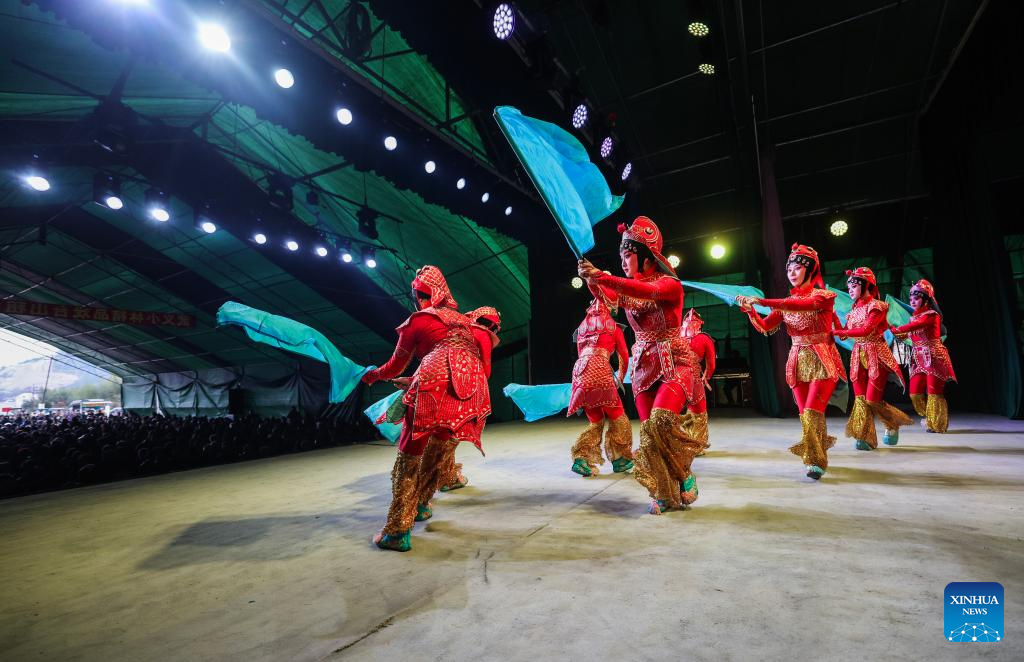 Artists stage a Wuju Opera show in Meixia Village, Jinyun County of Lishui City, east China's Zhejiang Province, Jan. 29, 2026.