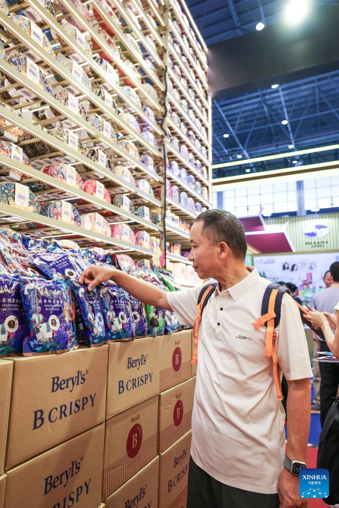 A visitor learns about Malaysian products during the sixth China International Consumer Products Expo (CICPE) in Haikou, south China's Hainan Province, April 15, 2026. As a major event showcasing the Hainan Free Trade Port (FTP) after it fully launched island-wide special customs operations in December last year, the sixth China International Consumer Products Expo (CICPE) kicked off on Monday in Haikou, capital of south China's Hainan Province, attracting more than 3,400 brands from over 60 countries and regions.