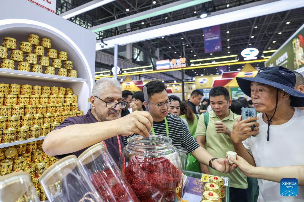 The sixth CICPE has expanded in scale, with an exhibition area of 143,000 square meters, up 13,000 square meters from the previous edition. International exhibits account for 65 percent of the total, an increase of 20 percentage points from last year. (Xinhua/Pu Xiaoxu)