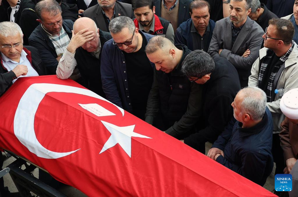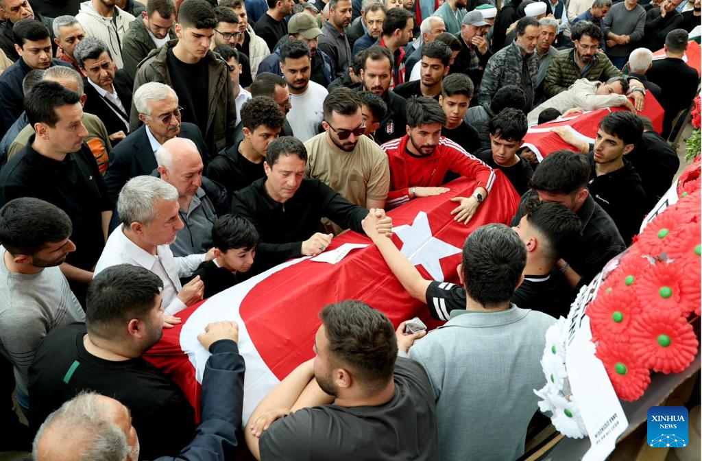 People attend a funeral held for eight students and one teacher who were killed in a school shooting in Kahramanmaras, Türkiye, on April 16, 2026. At least nine people were killed in a school shooting in southern Türkiye's Kahramanmaras city on Wednesday, according to the country's Interior Minister Mustafa Ciftci.