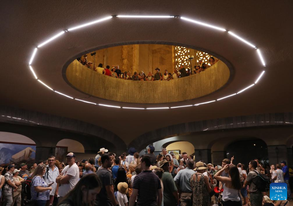 People wait to see the sun shining on the Cenotaph around noon on the Day of Reconciliation at the Voortrekker Monument in Pretoria, South Africa, on Dec. 16, 2025. December 16 was called the Day of the Vow in South Africa. It was renamed the Day of Reconciliation in 1994 after the end of apartheid, with the intention of fostering reconciliation and national unity. (Xinhua/Chen Wei)