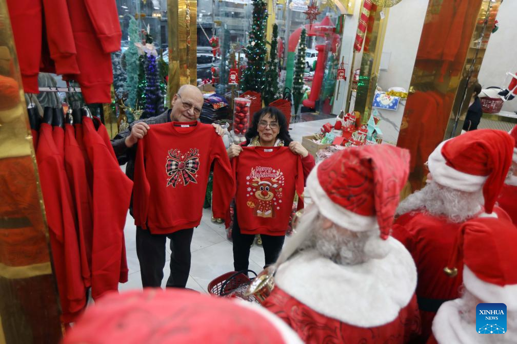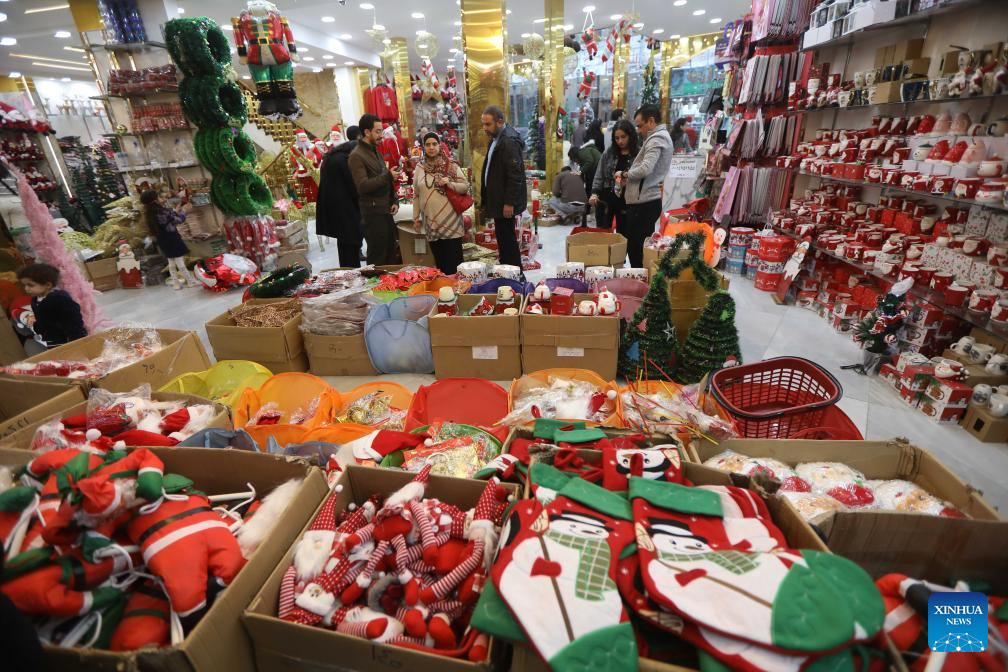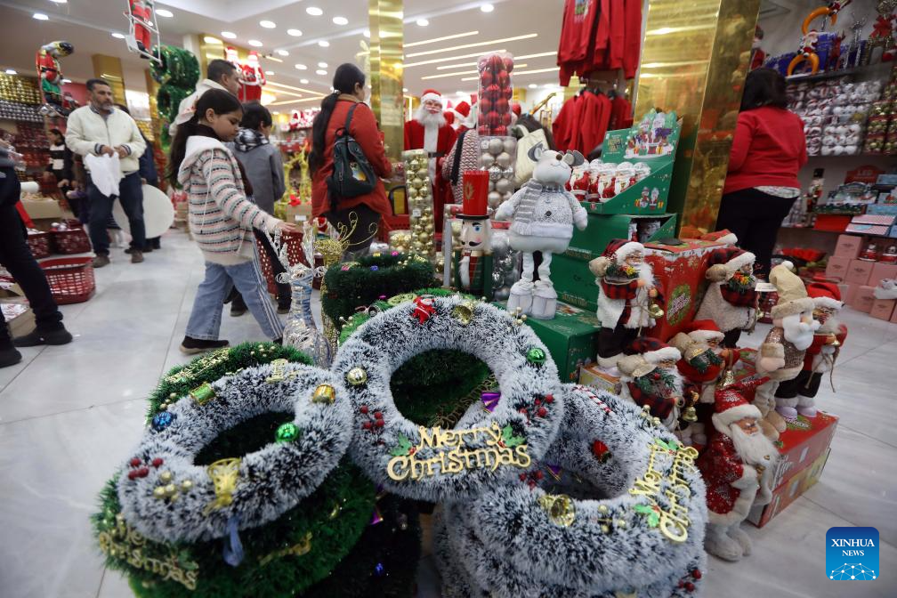 Customers select Christmas decorations at a shop in Cairo, Egypt, Dec. 19, 2025. (Xinhua/Ahmed Gomaa)